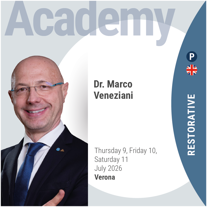 From April 17 to 19, 2025, the Komet Academy in Verona will host an exclusive training experience with Dr. Marco Veneziani, entirely dedicated to adhesive restorations through direct and indirect techniques, integrated with innovative surgical procedures. The course, conducted in English, will provide an in-depth theoretical and practical exploration of the most advanced restorative methodologies, covering the use of adhesive composite techniques, indications, and operative strategies to achieve optimal aesthetic and functional results. Indirect procedures will be thoroughly analyzed, from cavity preparation to the adhesion of inlays, onlays, overlays, and adhesive crowns, with a focus on material selection and the management of restorations with deep cervical margins. The final day will be entirely dedicated to a hands-on session, where participants will execute the learned techniques step by step, working on resin teeth under the direct supervision of the speaker. A unique opportunity for those looking to refine their expertise in adhesive restorative dentistry.