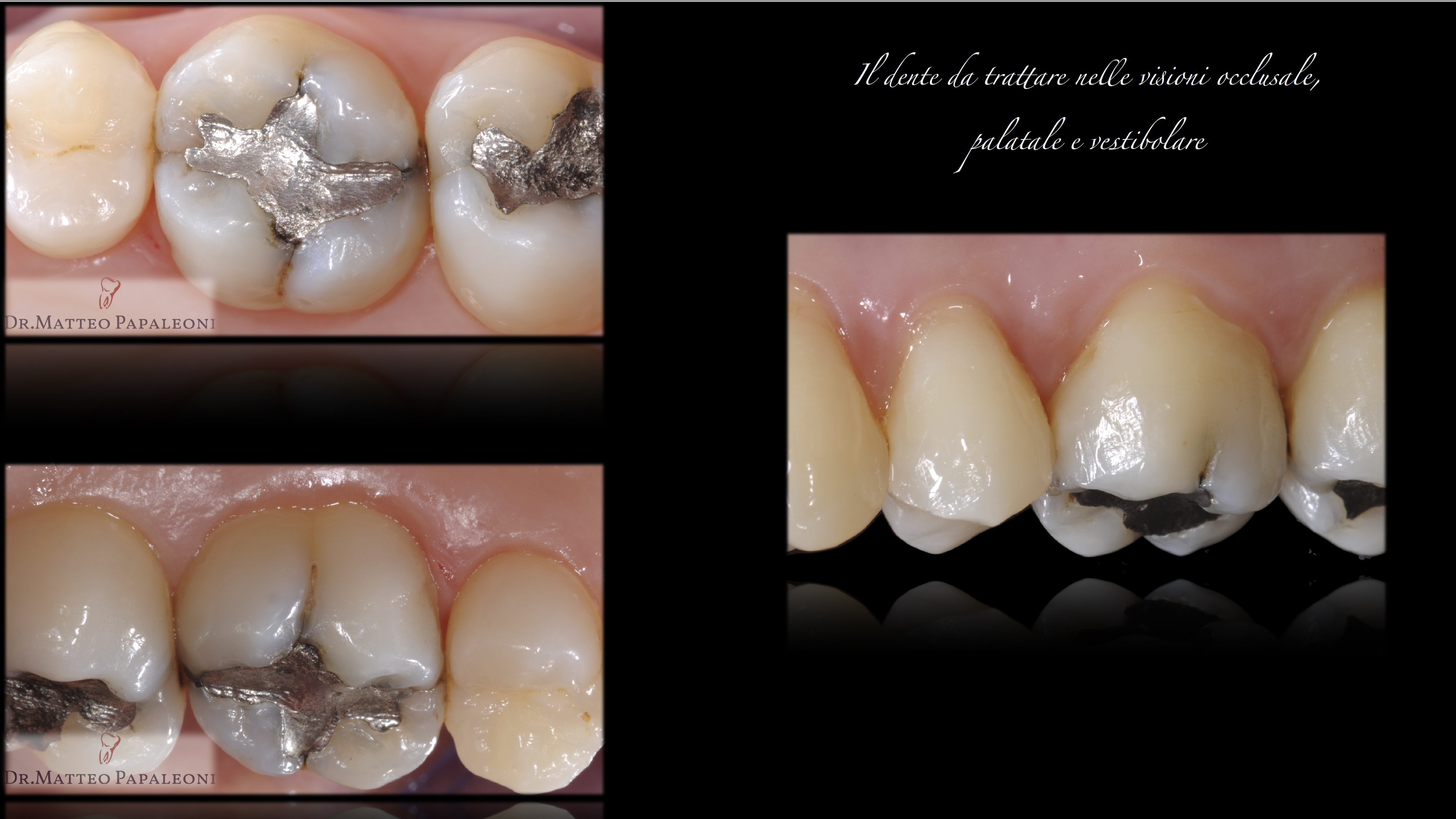 Caso Clinico Dr Matteo Papaleoni (10) Il dente da trattare nelle visioni occlusale, palatale e vestibolare.