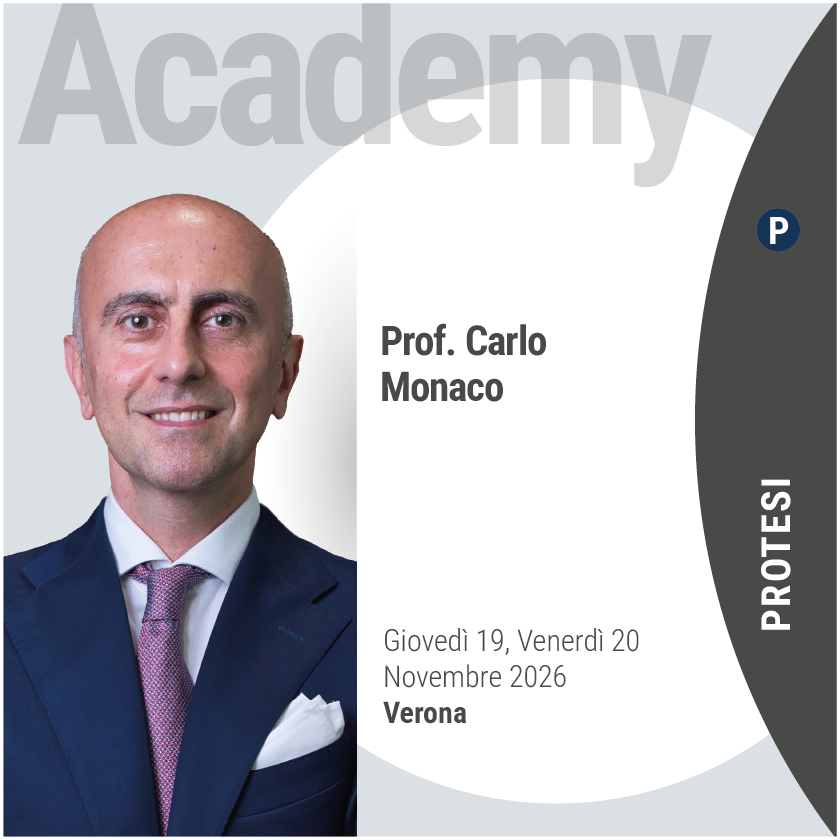 Prof. Carlo Monaco è Professore Associato presso l’Università degli Studi di Modena e Reggio Emilia, dove dirige il Master in “Protesi e Implantoprotesi: tecnologie tradizionali e digitali”. È uno dei principali esperti italiani nel campo della protesi dentaria, implantoprotesi, materiali dentali e odontoiatria digitale.